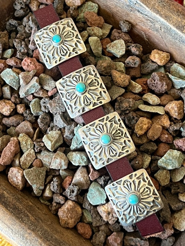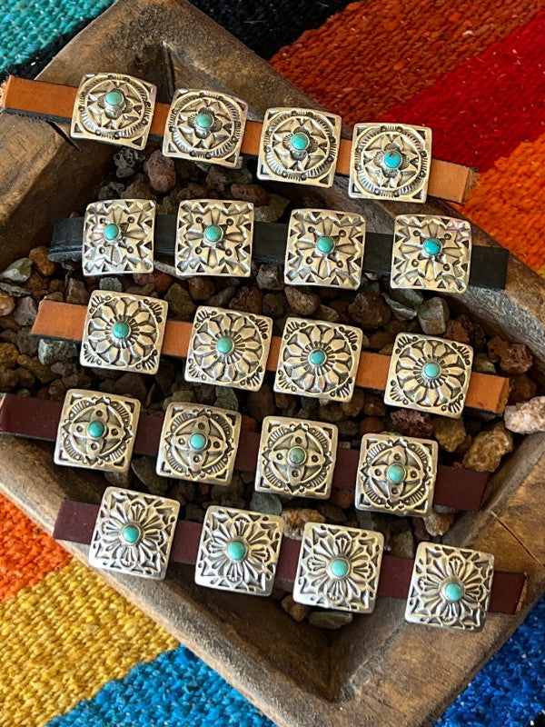 These sterling silver slide conchos are perfect for your leather bracelet & hat band projects! Turquoise colors will vary, slide bars are base metal. Make sure to search “Concho Slide” to see all styles available. This listing is for one piece.
