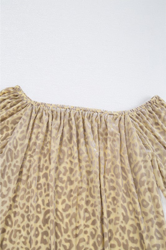 Women Leopard Velvet Burnout Off Shoulder Blouse