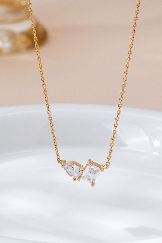 Teardrop and Emerald Cut Duo Necklace