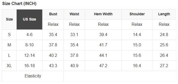See size chart for approximate measurements